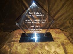 Lauren getting her 6th place in the nation award for 2008-2009! Great job for 4 months of showing English Lops!